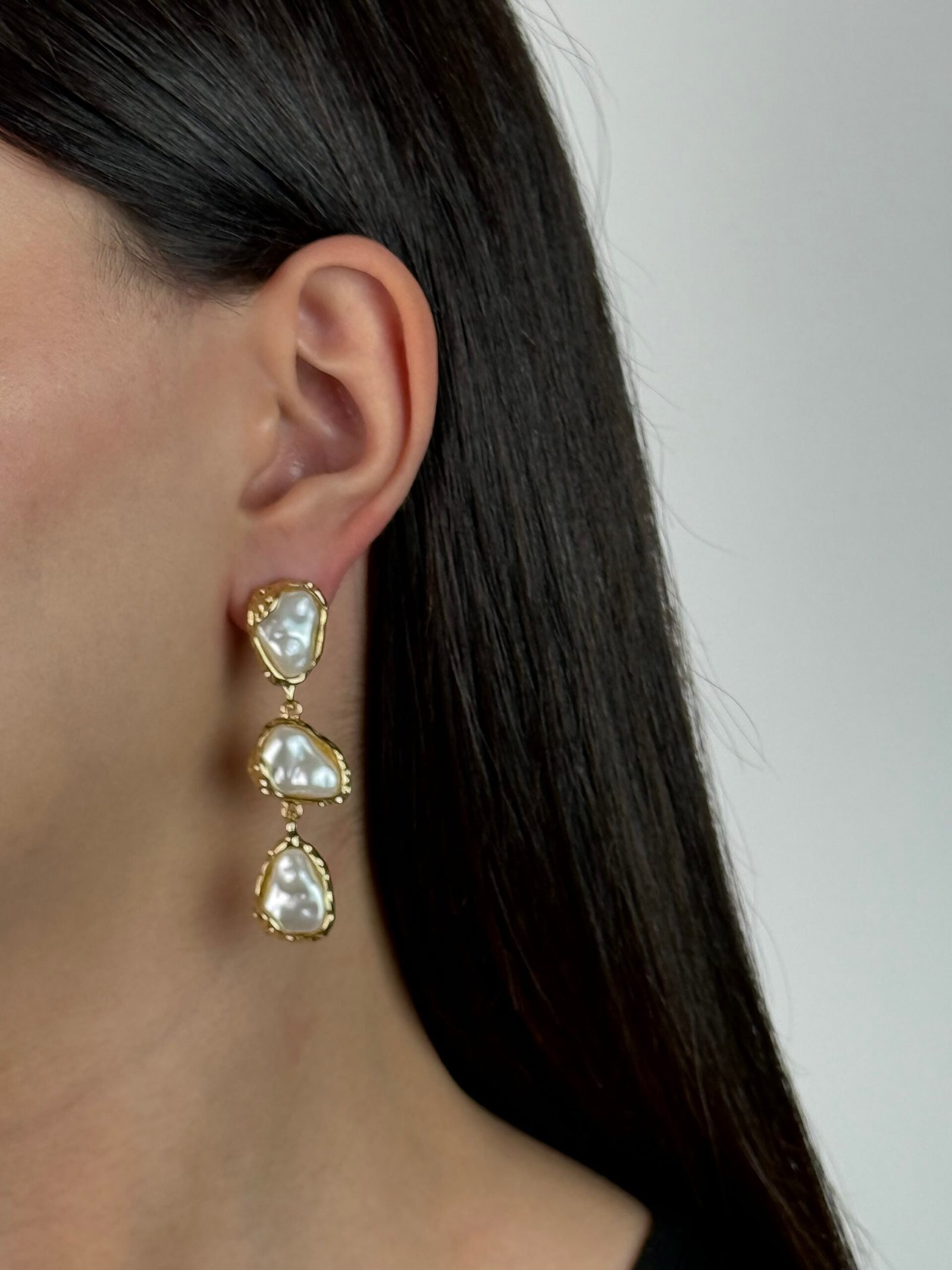 Boucle 03 Perles blanches , Doré